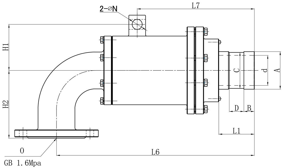 Model O d L1 L6 L7 N H1 H2 法兰式外管尺寸对照表